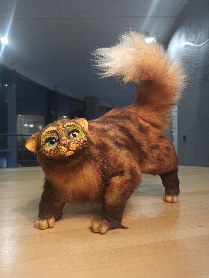 Сделала игрушку в смешанной технике, морда и лапки из полимерки, туловище из проволочного каркаса, синтепона и искусственного меха. Всё окрашено акрилом, полимерные части покрыты соответствующим лаком. Глазки из стекла, раскрашены вручную, с эффектом слежения. Полностью ручная работа. Может принимать любые позы, всё подвижное. Использовала искусственный мех песец, котик получился мягкий и весьма тискательный) Меня можно найти по ссылке вконтакте. Читайте также.