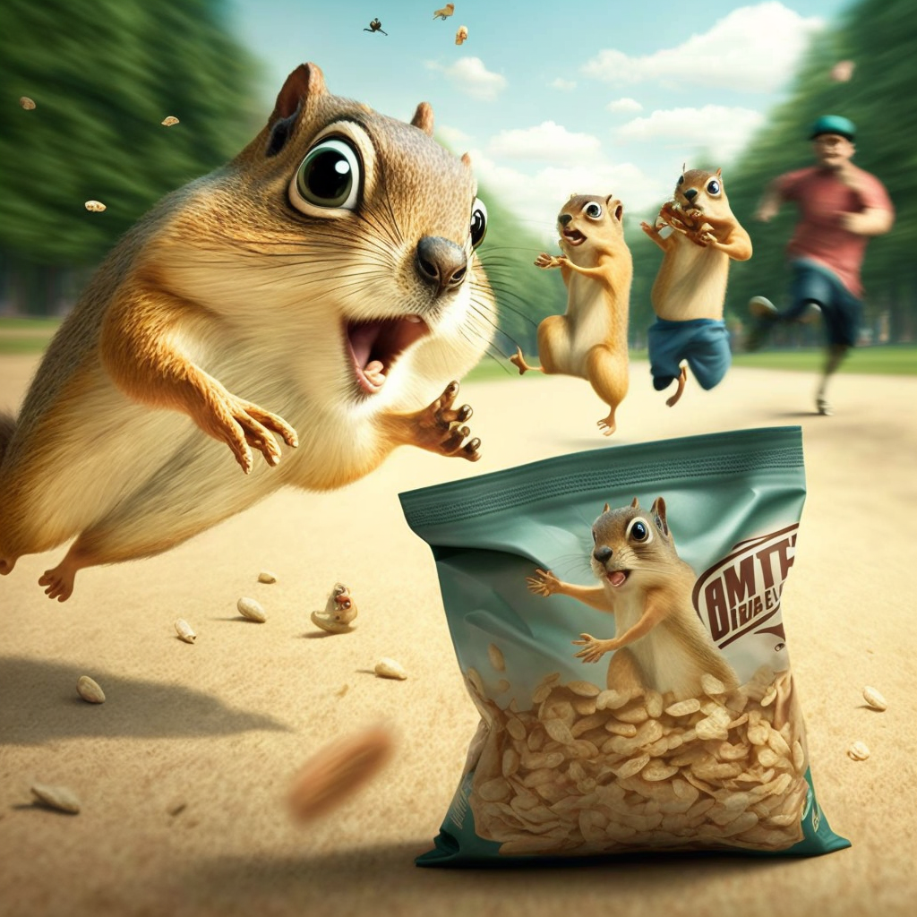 Мы не знали, что это была не обычная кража чипов. Когда мы открыли сумку, из нее выскочила крошечная белка и начала бегать кругами вокруг одеяла, крича так странно, что можно описать только как бредом, вызванным чипсами.