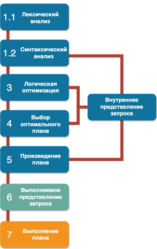 В прошлой статье я мельком затронул такой вопрос как выбор оптимального алгоритма для поиска. Давай разберемся, как же база данных обрабатывает наш запрос. Сначала база данных проводит лексический анализ, чтобы определить, не допустили ли мы ошибку в именовании полей или в синтаксисе языка SQL какой-нибудь ошибки. Помимо этого база “смотрит”, какие объекты были затронуты в запросе и рисует свое “внутреннее представление” о нем. Далее - происходит оптимизация. Например, если в фильтре WHERE есть поле, по которому построен индекс, но оно идет не первым по порядку, то база его переставляет и будет фильтровать сначала по нему. Следующим этапом идет построение вариантов “плана запроса”, то есть что и в каком порядке будет идти и выбор оптимального из них, путем теоретической оценки времени их выполнения После этого - БД формирует выполняемое представление плана, то есть такое, которое будет выполнено компьютером, например, в машинных кодах или в исполняемый код системы управления базами дан
