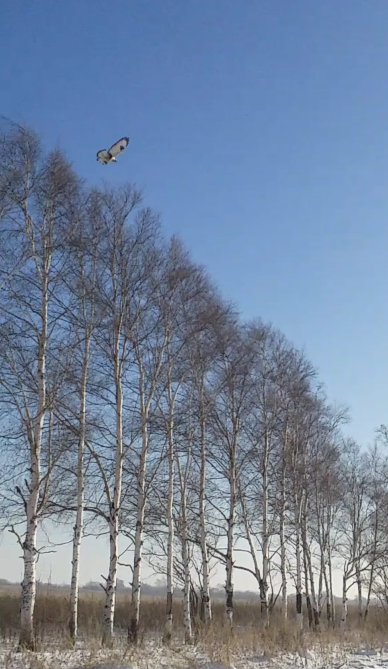 Бегая свою тренировку где-то в степной зоне, где в радиусе 10-15 километров отсутстуют лесные насаждения, за исключением берёзовой полосы протяженностью 300-500 метров взглядом неожиданно наткнулся на гордо сидящего на вершине берёзы Зимняка, или мохноногого канюка (Buteo lagopu). Отряд: соколообразные. Семейство: ястребиные. Условия встречи: Приморье - степная зона; 07 января 2023 года, ясно -15/20 градусов по Цельсию. Птица внушающих размеров. В округе множество фазанов, и скорее всего - грызунов, а также сельскохозяйственных угодий промышленных масштабов, на которых имеются остатки семян, урожая зерновых. * на миграциях и зимовках вид предпочитает открытые и полуоткрытые ландшафты - идеально подходит. Следующая информация взята из общедоступных источников информационно-телекоммуникационной сети "Интернет". Широко кочует, в годы спада численности грызунов может не гнездиться вовсе или откочёвывать для гнездования в другие районы. На зиму откочёвывает в зону степей и лесостепей Еврази