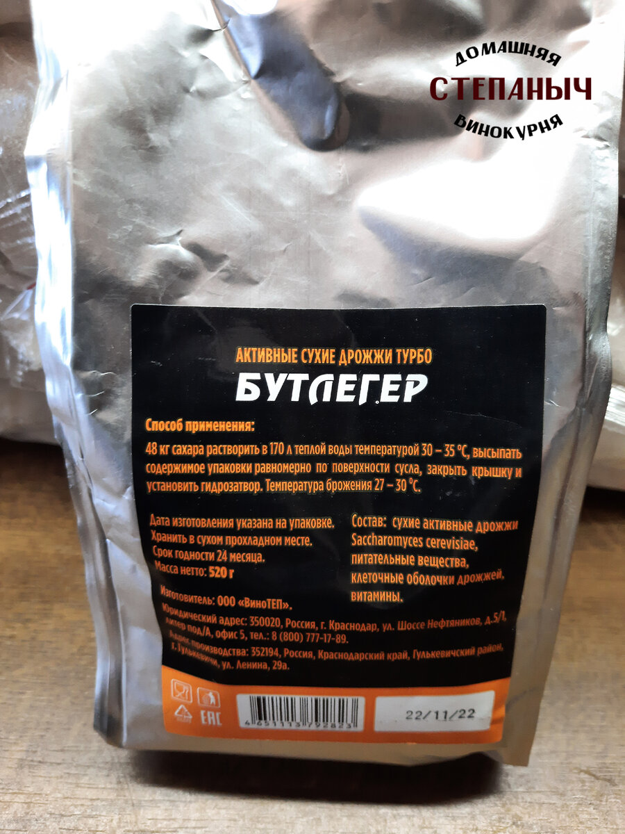 Доброго времени суток дорогой читатель, Сегодня при посещении магазина с продукцией для самогоноварения, продавец предложил мне испробовать новинку поступившую в продажу совсем не давно - дрожжи "Бутлерег". С учетом сложившийся ценовой политики в настоящее время на продукцию данного сегмента они имеют довольно привлекательную цену и по заявлению производителя рассчитаны на 200 литров сахарной браги. Не долго думая я согласился взять их на пробу и решил поделиться с Вами впечатлением о данном товаре. Дрожжи являются аналогом "Bragman industrial" и производятся в Краснодарском крае. Имеют довольно привлекательную цену и производитель заверяет нас о том, что они могут переработать 48 кг. сахара на 170 литров воды. Закупившись всем необходимым я принялся к процессу. Конечно ставить сразу брагу на 48 кг сахара в условиях зимнего периода времени я не буду т.к. брожение будет происходить в доме. За основу браги я взял 12 кг. сахара и 40 литров воды. Исходя из несложных расчетов на 1 кг. сахар