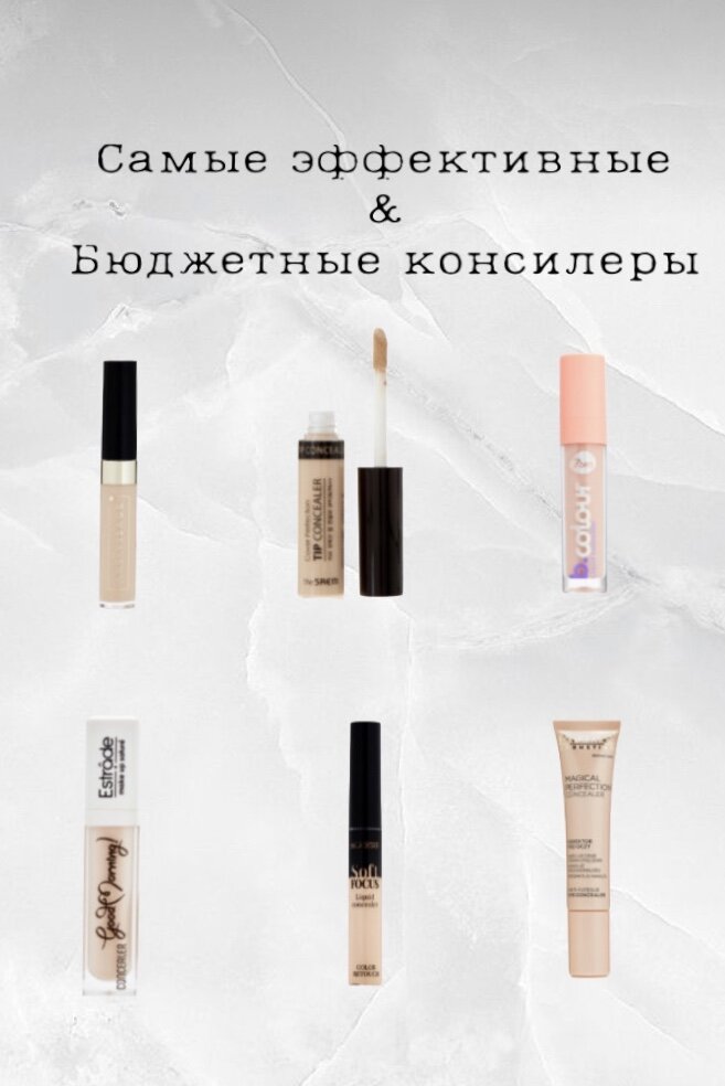 Порой одного консилера достаточно,чтобы быстро освежиться. Моя подборка самых эффективных средств из бюджета. 1. ART-VISAGE miracle touch хороший кроющий консилер с небольшим светоотражением.Не сушит,хороший объём.Самый ходовой оттенок 102 2.The saem сейчас для меня лучший из бюджета.Перед нанесением обязательно нужно увлажнять зону под глазами Ходовой оттенок 1.25 3. 7DAYS b.colour консилер с очень пластичной текстурой и правильным персиковым подтоном.Хорошо подойдёт для перекрытия темного пигмента.Ходовой 01.02 4. ESTRADE good morning хорошо кроющий,не скатывается.Экономичный Ходовой оттенок 22.В линейке так же имеются цветные( розовый,персиковый и т.д)хороши будут для дополнительной коррекции цветовых нюансов. 5. BELOR DESIGN soft focus консилер с невесомой текстурой,лёгким светоотражением.Хорош будет для возрастного макияжа,совершенно не скатывается. Ходовой оттенок 101 102 почему то светлее 101 и подойдёт для светлой кожи. 6. EVELINE magical perfection хорошо кроющий консилер с