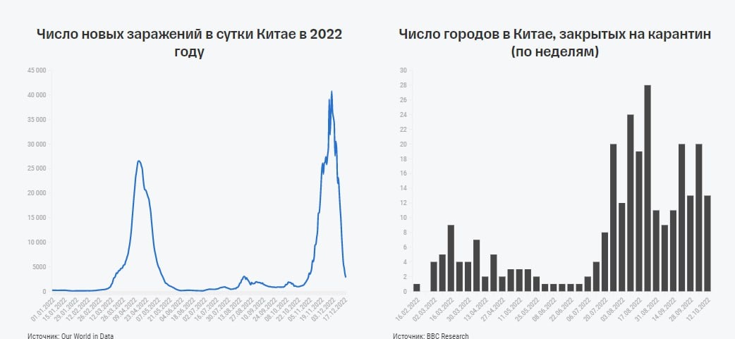 ℹ️ Ключевой негативный фактор экономики КНР является прошедшая политика нулевой терпимости к ковиду. В случае запуска экономики и открытия границ, о чем я писал ранее, начнется стимулирование всей мировой экономики, как и чуть ли не всех секторов, кроме недвижимости. Ⓜ️ Следует отметить, что вероятнее всего в первую очередь запуск коснется сектора потребительский товаров (население устало от сдержанного потребления) и рост цен на сырье, в случае отсутствия повышенного предложения. 🔺Фундаментального рынок КНР значительно снизился за последние два года, что дает перспективы роста. Для реализации подобного сценария, в отличии от других достаточно отслеживать "открытия" границ к участию в экономический процессах мира. 🟣Стоит также отметить существование 3 сценариев: базового, негативного и позитивного. Базовый 🔰Вероятность наступления наивысшая. К середине 2023г. границы полностью открываются, что влияет на всю экономику и смещает даже наступление рецессии в глобальной экономике