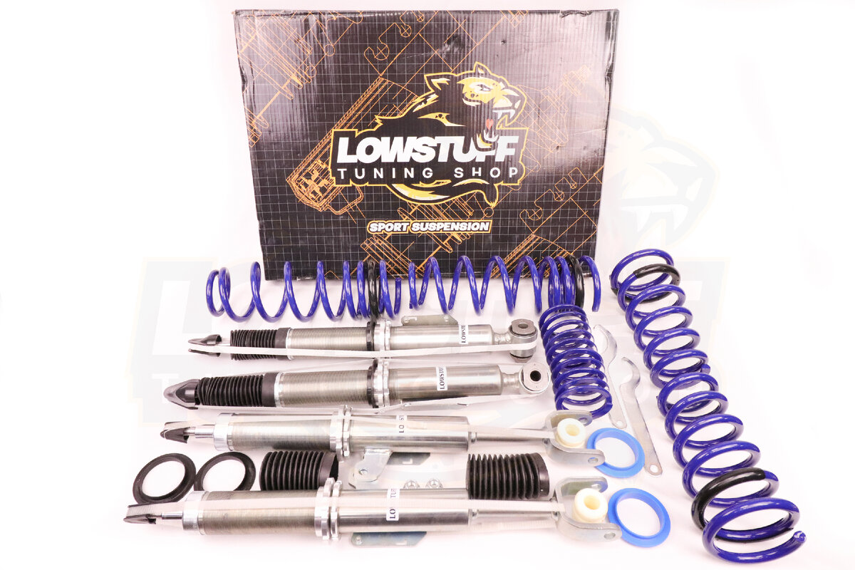 Комплект койловеров LOWSTUFF EVO-I представляет собой начальную линейку винтовых подвесок с одной регулировкой под пружиной. Аналогичны по своим характеристикам с Jom Redline, Jom Blueline, TA-TECHNIX