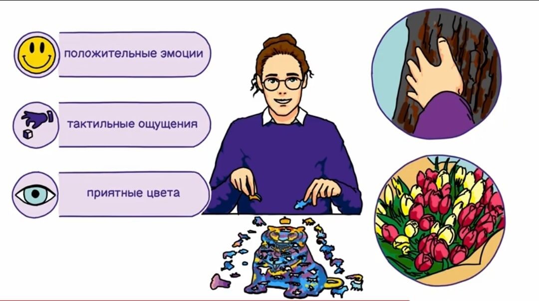 Но в этом посте хочу рассказать, как ассоциации можно использовать в объяснении. И как можно потрогать словами:) В Смыслотеке мы делали ролик, в котором объясняли чем могут быть полезны деревянные пазлы. И заказчик хотел, чтобы была отображена обратная связь от пользователей. Пользователи говорили о классных тактильных ощущениях и приятных глазу цветах. Т.е. об ощущениях, которые возможны только при непосредственном контакте с пазлами.