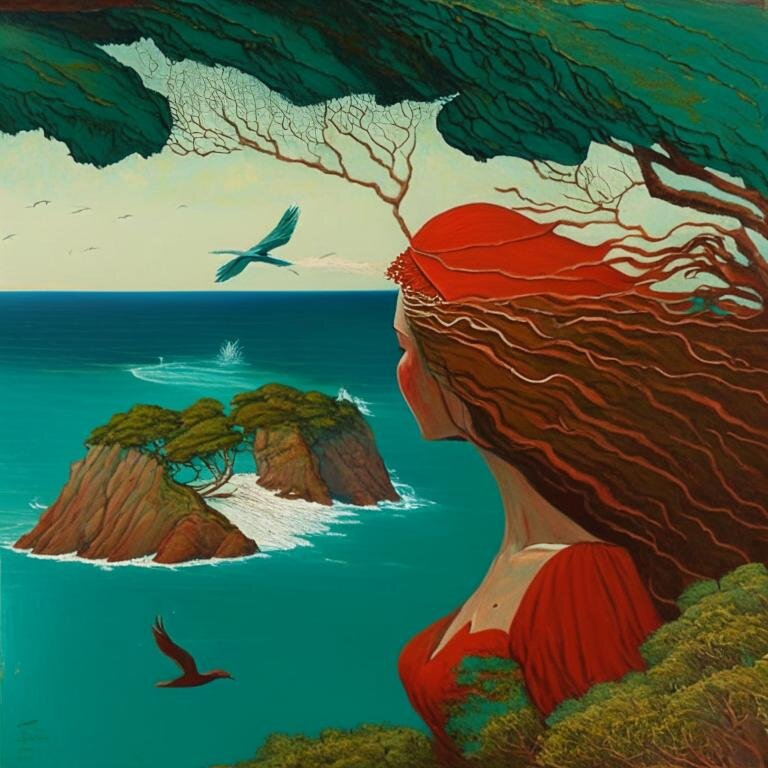 И вот далекий лучик света сообщил ей о конце пути. Протиснувшись в щель, Лера оказалась в великолепном гроте. Столб чистого голубоватого света струился из большого отверстия на потолке. Там далеко сквозь листья и лианы виднелось небо. Посередине обнятый прозрачной жемчужной водой спал островок. Множество маленьких островков были расположены рядом. Свет преломлялся, не давая разглядеть, что же там. Тонкие ветви лиан, как вены, расползались по коричневым стенам, окутывая камни. Чудесный запах свежей травы заполнял эту пещеру. «Как странно, — подумала Лера, — нет запаха гнили и влажности, лишь милые носу ароматы».
