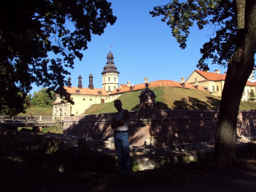 Основная достопримечательность Несвижа – это Несвижский замок династии Радзивиллов. Правда, на тот момент он был на реставрации. Погулять по его территории можно было, по парку. Но на видах замка имели место строительные леса. И на территорию зАмка вход был запрещен. У входа на территорию замка встретилась девушка, у которой спросил, где тут вход в сам замок. Девушка живо откликнулась на мой вопрос. Более того, предложила составить мне компанию и рассказать про этот замок. Бабушка у нее раньше работала здесь, а сама она из Витебска на каникулы приезжала регулярно в Несвиж. А теперь вот на выходные приехала. Позвонила бабушке, сказала, что придет чуть позже, т.к. встретила туриста из Росссии и прогуляется немного. Было неожиданно и приятно такое внимание. Прогулялись с Олей (так звали мою спутницу) по осеннему парку, посмотрели замок снаружи, попрощались и пошли каждый по своим делам. Ее ждала бабушка, а меня – очередной замок.