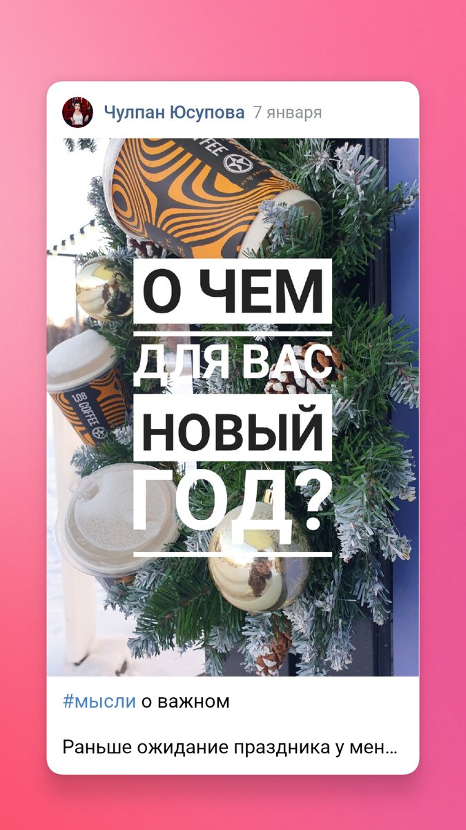 #мысли о важном Раньше ожидание праздника у меня вызывало чувство радости от предстоящей суеты, готовки, подарков и прочего. Сейчас же такие праздники как новый год, день рождения и др не вызывают у меня каких-либо ярких эмоций и ощущений.Я не жду их как раньше и не готовлюсь к ним как то особенно. Это наверное происходит последние несколько лет. Простые будни для меня стали как праздничные, такие же особенные. И объясню почему. Во первых это происходит потому что для меня каждый день является важным событием. Я реально испытываю удовольствие от каждого прожитого дня (ну почти от каждого, конечно же бывают "особые дни") и это не зависит от общепринятых правил и празднования. Ощущение праздника, чуда и ожидание прекрасного у меня стоит как ежедневная задача. Начиная с утра я испытываю радость и благодарность, только потому что я проснулась. Я ещё учусь этому навыку, наслаждаться каждым моментом, и наверное поэтому все праздники теряют для меня интерес и ценность. Я двигаюсь к тому ч
