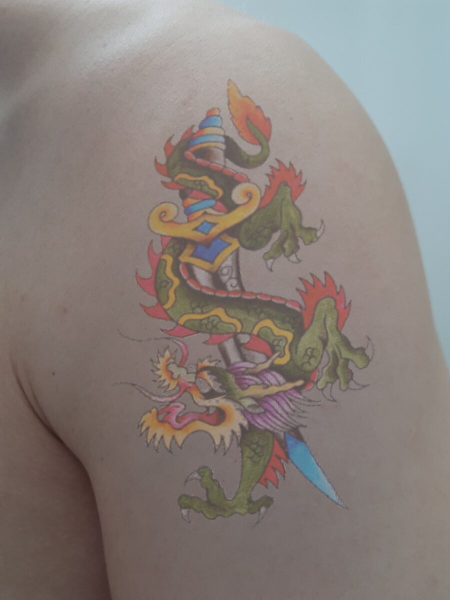 И так, мы живём в современном мире в 21 веке, и для нас для взрослых людей уже нет ничего естественного видеть на молодых людях серьёзную татуировку, а которой они и понятия и обозначения не знают. Не так давно, был у меня случий, отдыхал я в парке на скамейке прекрасным летним днём, подсела ко мне девушка лет двадцати, признаюсь очень симпатичная особа, она была одета в короткие шорты, и по этому я без труда увидел у неё татуировку на ноге "Меч с обвитым драконом". Увидел, не знал как спросить, не в прямом смысле спросить, а так узнать почему на такой красивой девушке набита такая серьёзная наколка. Она мне усмехнулась, и ответила а вам дядя что до моей татуировки дело какое, что хочу то и бью. Ответ убил конечно, ну я снова её спросил робко, "а может ты значение знаешь?" На этот раз она не стала грубить и ответила, что просто смотриться красиво! Я ответил да красиво и мужественно, а почему мужественно спросила она! Да потому что ты девушка а эта наколка для воинов мужчин, меч считает