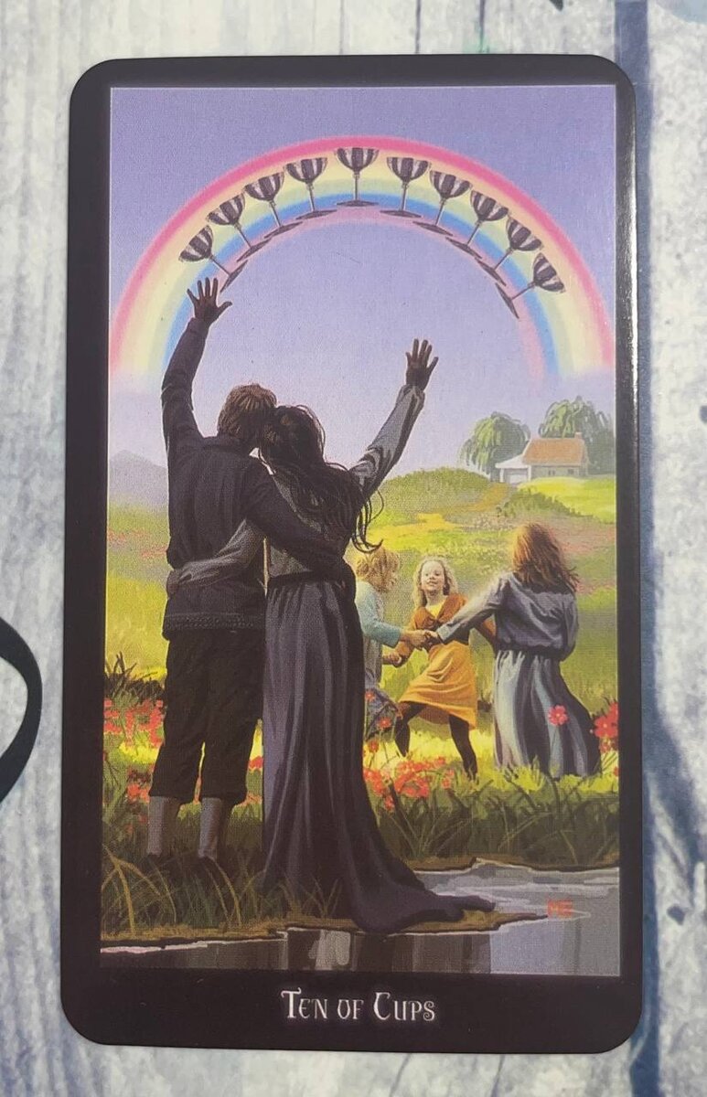 Самое высокое число младших арканах. Эмоции, радость эмоциональная наполненность. Семейный праздник, когда собирается вся семья за большим столом. Хорошие новости касающаяся вас или ваших детей. Это очень семейная карта. Состояние когда кажется, что мир полон чудес и радости. Исполнения ваших желаний.
