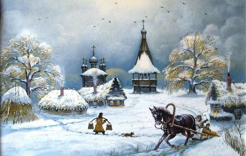Морозец прихватывал припорошенную снегом дорогу, щипал нос, румянил щёки. Петруха заскочил в церковь — от людского дыхания было душно, пламя свечей разливалось в туманной пелене, огоньки плыли, соединялись в одно большое сияние, охватывавшее молящихся прихожан со всех сторон.