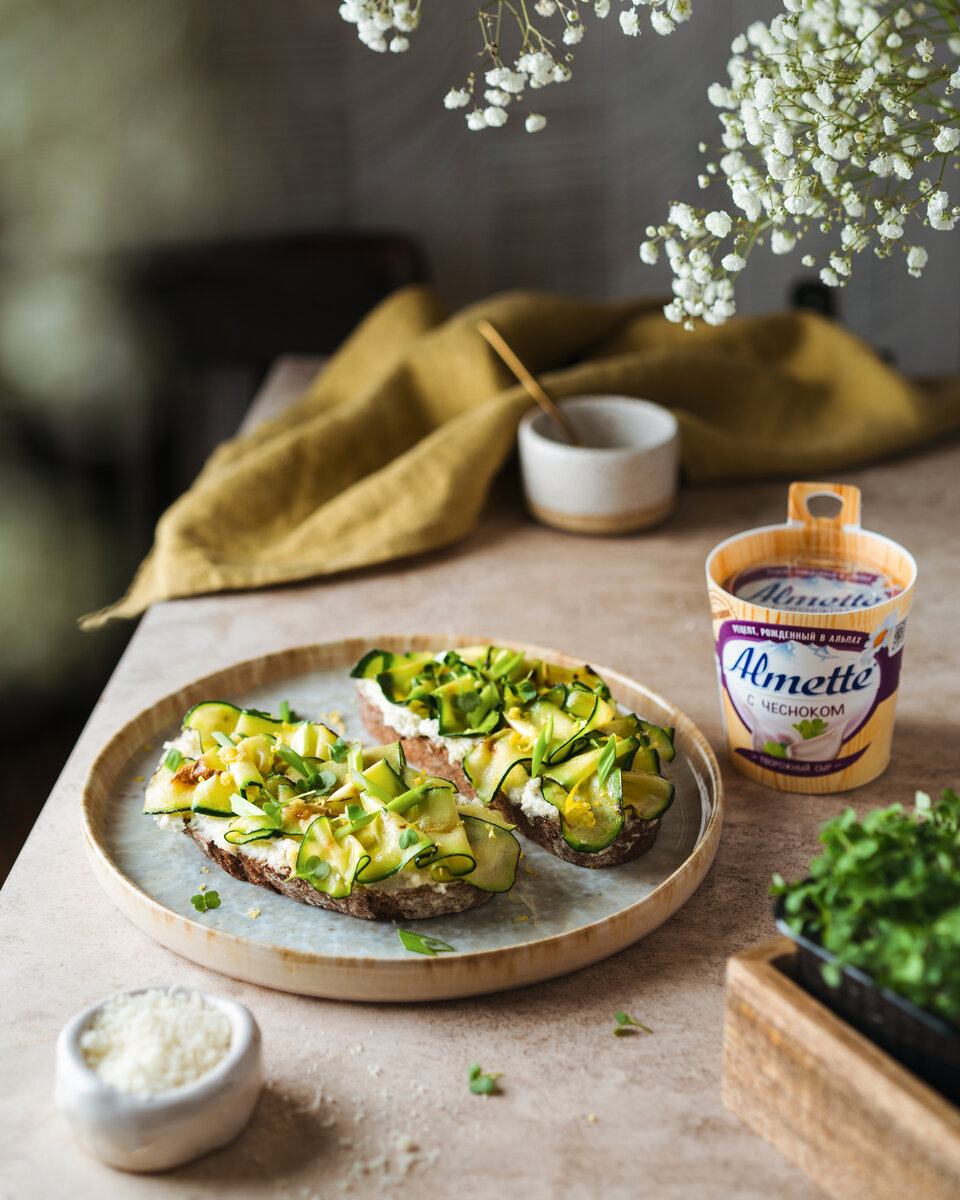 Наше предложение — Almette с чесноком, он добавит особую пикантную нотку. Также можно взять сыр с огурцом и зеленью. В любом случае эти варианты бесконечно прекрасны.