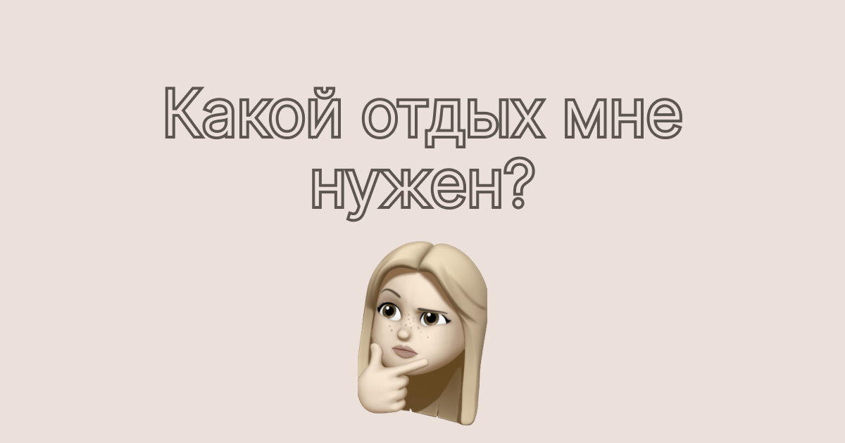 Бывало такое, что вы вроде целый день отдыхали, делали наполняющие дела, не работали, но все равно не чувствуете себя отдохнувшем? Дело в виде отдыха! Да-да, их есть несколько. Чтобы понять какой вид отдыха вам нужен, важно понять какая у вас была нагрузка, а точнее на что именно. Виды отдыха Первый — это физический. Физический отдых предполагает все, что помогает вашему физическому телу прийти в форму. К этой категории отдыха относится сон, массаж, йога, растяжка для мышц тела, спа-процедуры Ментальный отдых касается наших мыслительных процессов.