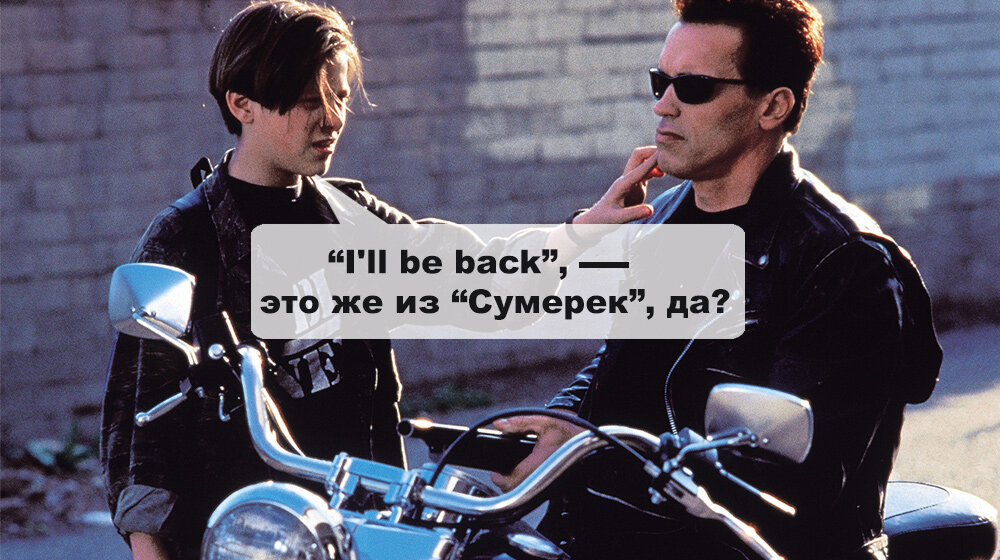 Вообще-то крутые парни не проходят тесты в Интернете. Но самым крутым парням наплевать на кодекс крутых парней. Хороший боевик отпечатывает слова в голове зрителя, как лом в черепе. Не каждый боевик мы помним наизусть, тем более если смотришь с корешами и пивом — тогда не всегда даже смысл сказанного доходит. По этой причине боевики в основном немногословны (хотя Гай Ричи и ему подобные пытаются разрушить этот стереотип). Мы не знаем, сложный получился тест или простой, да и не важно это, главное — дойти до конца, победив страх, а результат дело десятое. Пройти тест. Само собой, не все цитаты ты запомнил точно в том виде, в каком они использованы в тесте. А все потому, что существует миллион переводов и дубляжей. Мы слышим голоса этих людей, но никогда их не видим. Посмотри, как выглядят актеры дубляжа, чьими голосами по-русски говорят Шварценеггер, Скарлетт Йоханссон, Симпсоны и другие кинозвезды.