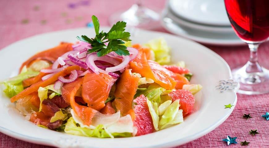 Для тех, кто жаждет салатов, но отказался от блюд с майонезом, этот рецепт — отличный вариант. Он лёгкий и сытный одновременно. Заправка в нём максимально лёгкая и острая, а сок свити и грейпфрута делает его необычным и запоминающимся. Вместо рыбы можно использовать любимые многими креветки. Количество калорий - 150,5 ккал БЖУ: 7 г / 7,7 г / 11,8 г ПОШАГОВОЕ ПРИГОТОВЛЕНИЕ ________ грейпфрут, салат "Айсберг", праздничные рецепты, цитрусовые, новогодние салаты, салат с рыбой
