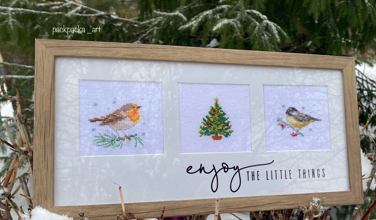 Есть мнение, что ФИКС ПРАЙС - это магазин для бедных. Лично я не согласна! Фикс – это магазин для экономных (в меру:) и творческих людей! Вообще, часто там «пасусь». Например, вот где еще можно оформить вышивку с паспарту за 200р? Хотя согласна, там встречаются товары, которые нужно «слегка» доработать. Но бывают и очень удачные, на мой взгляд, находки, как например, вот эта рамка, в которую оформлены 3 маленькие вышивки от "Алиса": Идея оформления вышивки в эту рамку не моя, - каюсь, подсмотрела на stitch.su. Там в нее были оформлены осенние миниатюрные пейзажи от «Алисы». Очень удачно, кстати. Сначала я тупо хотела повторить все. Даже купила рамку, но никак не могла определиться с сюжетом. Дело в том, что у «Алисы» их серия из 5, а рамка лишь на 3. Вот как выбрать? Опять же я не большой фанат осенних оттенков... Короче, придя в Леонардо за пейзажными миниатюрками от «Алисы», я купила в тот раз почему-то часы от «Панны». :) Однако с наступлением зимы мне захотелось повышивать что-