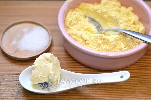 Ингредиенты Кукурузная мука - 2 стакана Соль - 1,5 ч.л. Вода - 4 стакана Сливочное масло - по вкусу Пошаговый рецепт с фото Мамалыга считается блюдом молдавской, румынской и западноукраинской кухни. На самом деле, такое блюдо существует и в ряде кавказских стран, а в Италии аналогом выступает полента. Готовится она из кукурузной муки и представляет собой подобие каши - теста. Практически во всех рецептах по приготовлению мамалыги говорится, что в кипящую воду надо класть соль и медленно насыпать муку, уверенно размешивая, чтобы не было комочков. Я хочу предложить другой способ, подсмотренный у одной итальянки, которая готовила паленто, а они очень похожи. При этом способе комочков не будет. Наливаем в кастрюлю с толстым дном воду. Добавляем соль. В холодную воду добавляем треть порции кукурузной муки и размешиваем. Мука осядет на дно, не образуя комочков. Тут видно, что комочков нет. Теперь ставим кастрюлю на средний огонь и помешивая доводим до кипения. У вас получится гладкая кремооб