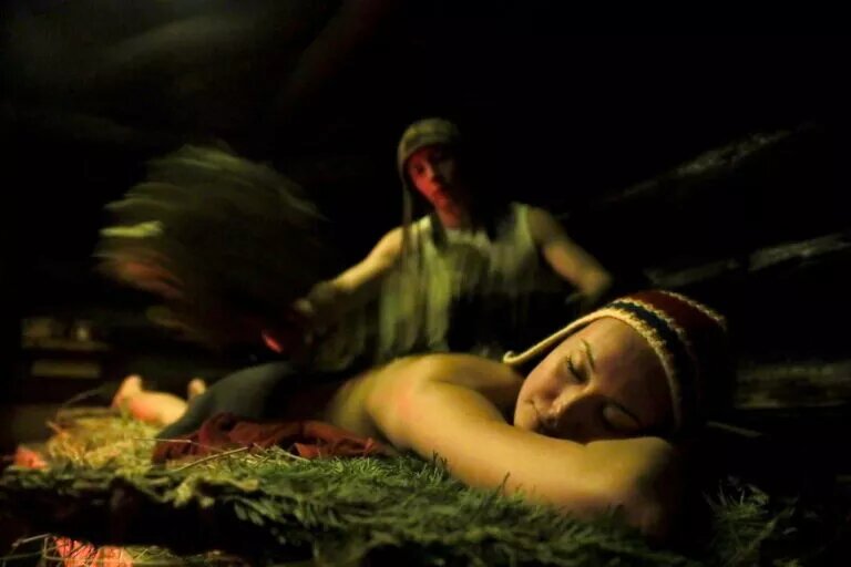 Банная процедура начиналась с того, что парную проветривали, после чего плескали на камни кипяток. Далее приглашались «банные девы» — натиральщицы или махальщицы (в зависимости от региона девушек называли по-разному). Они разбрызгивали по стенам настои душистых трав, застилали пол свежим