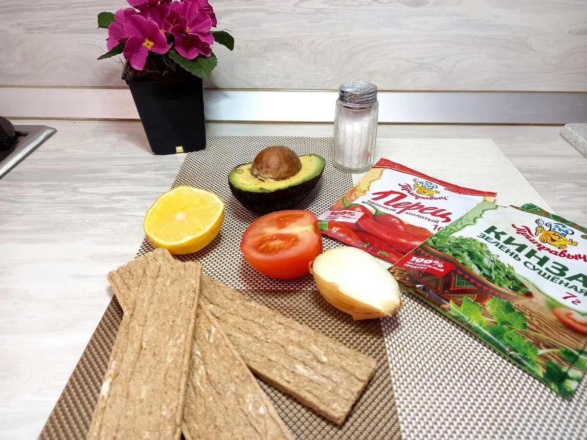 Подготавливаем продукты Авокадо обязательно берем спелый и очень мягкий. Убираем с него косточку и вынимаем всю мякоть, очищаем лук, томат обдаем кипятком и снимаем с него кожицу Смешиваем ингредиенты Перекладываем авокадо в миску и разминаем до того момента, пока консистенция не станет похожей на пасту. Следом сразу же добавляем лимонный сок, чтобы фрукт не потемнел. Шинкуем лук очень мелко и перекладываем в миску к авокадо. Туда же добавляем молотый красный перец, соль и кинзу. Перемешиваем. Помидор нарезаем также очень мелко. Добавляем его к остальным ингредиентам и при желании пюрируем бл