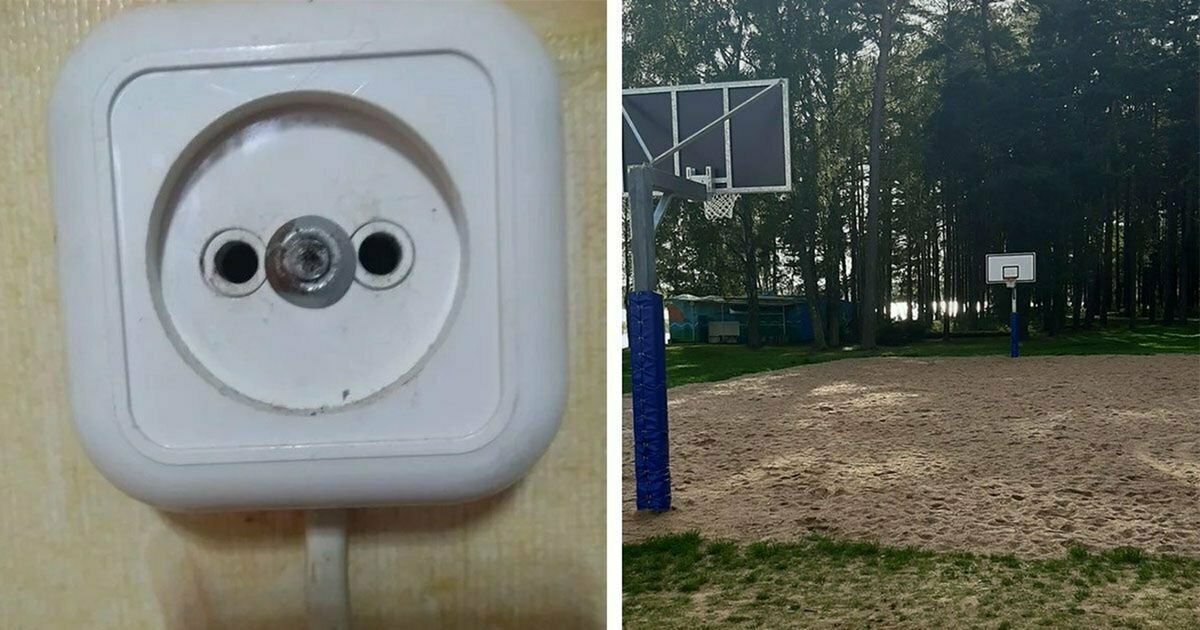Некоторые люди считают, что работа руками может отключить голову. Но это не так - это заблуждение! Мозг должен управлять руками, говорить им, что и как делать. Если нет, они могут совершать удивительные вещи! Хуже всего, когда работа уже сделана, а вы ничего не можете сделать. Выход только один: взять передышку и искать новых, ответственных сотрудников... Новая остановка была построена поверх старой. Зачем беспокоиться? Мы все задаемся вопросом, удобно это или нет! Хорошо, что не работает, если уже не работает...! Мы все продумали заранее. Но он точно не упадет. Решение оказалось весьма неудачным. Почему бы не сделать окно здесь? Давайте сделаем это! Провода были явно перепутаны. Вот почему кнопки были такими, какими они были. Когда пожарные видят эту свечу, у них случается нервный срыв. А пироманьяки с удовольствием... Нечего скрывать! Поэтому в туалете есть прозрачная дверь.