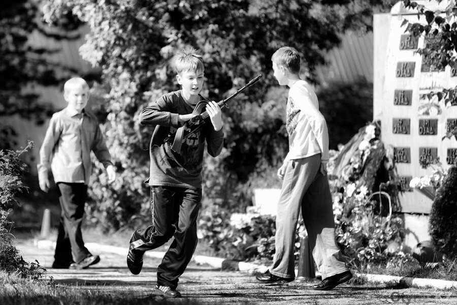 Играли мальчишки в войну во дворе, Берёзы кивали в ответ детворе. Смеялись, резвились - и все нипочём! Сквозь годы беда заглянула в их дом. Сжимая гранату дрожащей рукой, Готовясь принять последний свой бой Солдат вспоминает свой двор, свою мать "Я знаю, мне есть за что погибать!" Я знаю, не видеть мне больше жену. Ты помни: я буду любить тебя лишь одну! За Родину жизнь свою я отдам, А эту гранату отдам я врагам... Играли мальчишки в войну во дворе, Берёзы кивали в ответ детворе. Запомнил тот двор героев своих- Мальчишек весёлых и удалых.