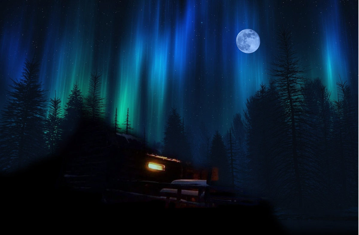 До научной станции еще шагать и шагать, но усталость взяла свое. Густая северная ночь окутывала пространство своей космической красотой. В просторах поднебесья блуждали сполохи северного сияния. Звёзды мерцали, яркая полная луна озаряла окрестности. Искрились снега. И тишина первозданная.