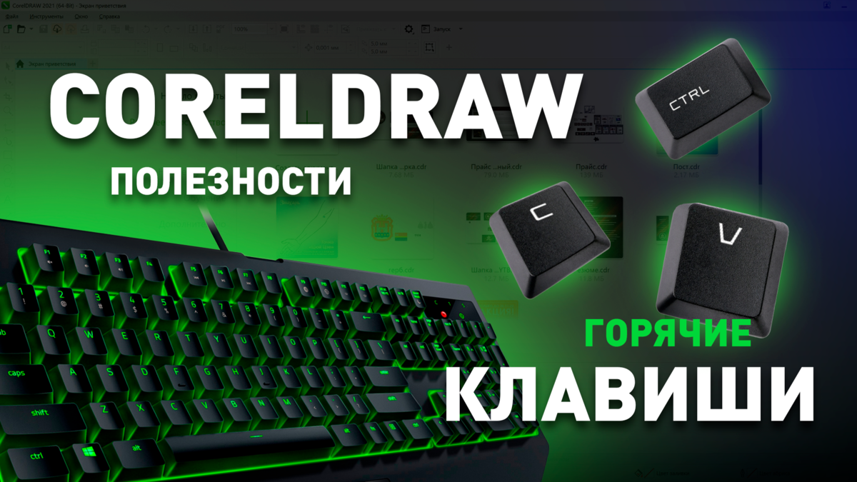 CorelDraw Выпуск следующего ролика откладывается, т.к. я пока решил поболеть. Однако это совершенно не повод оставлять вас без чего-нибудь интересного! И сегодня это будут базовые горячие клавиши CorelDraw. При работе с файлом (Ctrl+): N - создание документа S - сохранение документа Shift + S - как сохранить документ E - экспорт O - открыть файл F4 - закрыть документ Правка и редактирование (Ctrl+): C - скопировать выделенный объект V - вставить объект Z - отмена предыдущего действия Shift + Z - вернуть операцию, которая была отменена R - повтор предыдущей операции D - дублирование объекта X - вырезать Q - превратить текст в вектор Shift + Q - превратить обводку в вектор G - сгруппировать объекты A - выбрать все объекты Выравнивание и распределение: P - центрировать объект относительно листа R - выровнять по правой границе L - выровнять по левой границе T - выровнять по верху B - выровнять по нижней границе E - выровнять по горизонтали центр элементов C - выровнять центр объектов