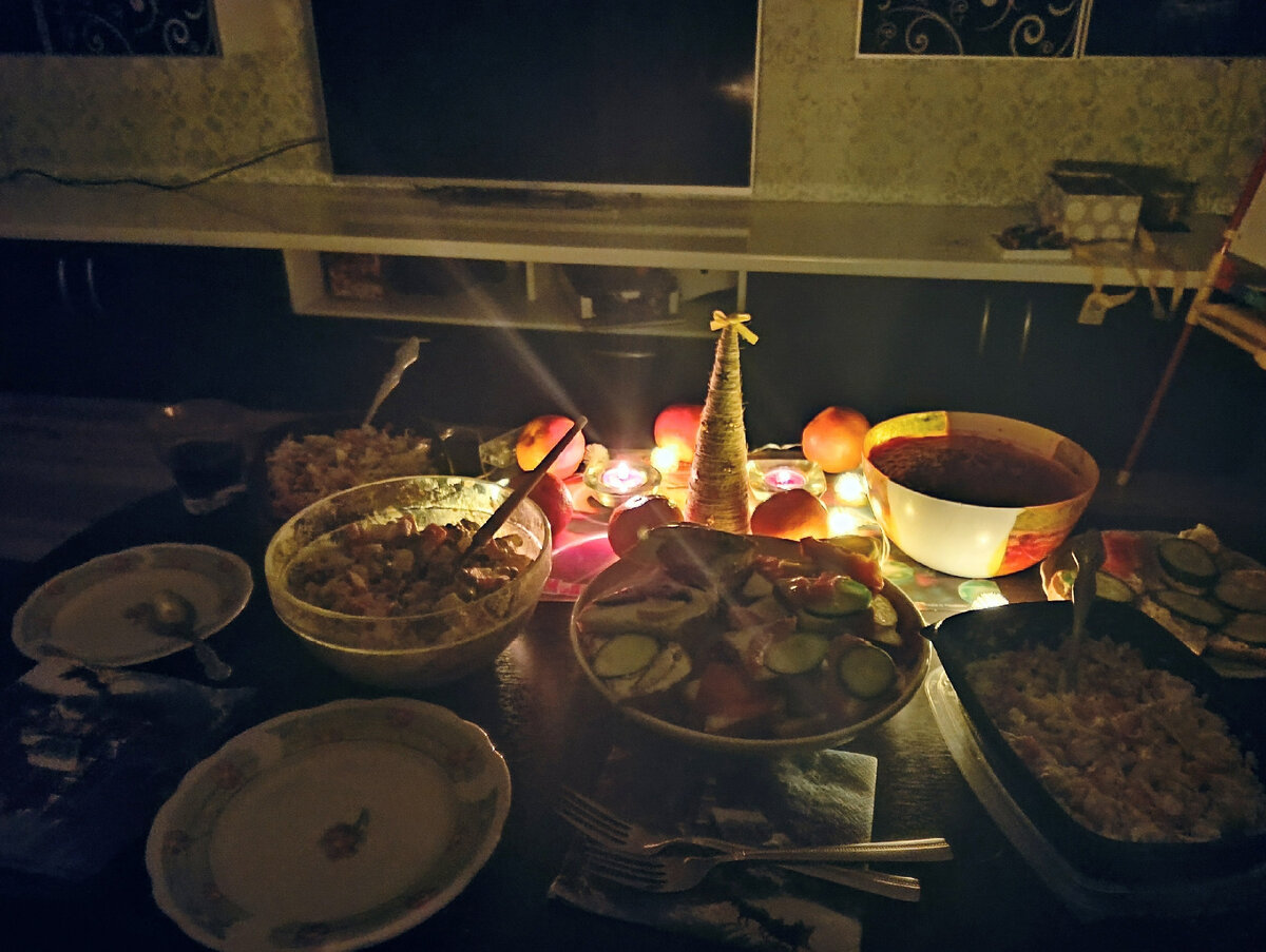 Всем привет, решила рассказать ,как мы встретили НГ и провели эти небольшие каникулы. Грузить вас фотками своих салатов и блюд не буду по двум причинам. Во-первых на столе было все стандартно и без изысков, так что красоты из граната на селёдке под шубой не было🤷♀️ А во-вторых у нас не было света )) Вернее он был, но отключался через каждые 25-30 минут, загорелась подстанция и нормально свет дали только где-то в 1:30.Поэтому большинство времени мы сидели вот так. Но грустно не было-мы с дочкой пели песни, я пила наливочку, а она колу пока наш папа пытался допечь курицу в духовке)) Поэтому посидели тихо и уютно. Где-то в час ушёл спать кот, потом дочь, а мы легли в районе 2:30. 1-го числа съездили к родителям, кстати, у них было очень вкусное вино,сфоткала на всякий случай. Второго сидели дома. А третьего решили сделать девичник, поехали с малой в ТЦ на шопинг и так прогуляться. Поели Wok,я взяла со свининой-так себе, а дочь взяла с креветкой-ей понравилось. Немного прошлись по магаз