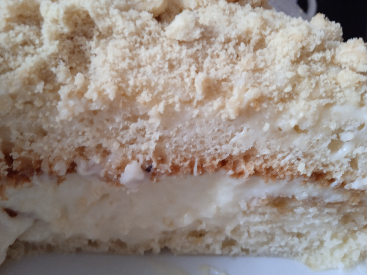 Торт очень нежный. Отлично подходит для детей. Имеет вкус схожий с мороженым пломбиром. Ингредиенты: -стакан жирного йогурта -стакан жирной сметаны -3 яйца -щепотка соли -стакан сахара -пакетик ванильного сахара -ложка апельсинового сока -2 с половиной стакана муки -разрыхлитель Для крема понадобится: -творожный сыр Чиз 2 стакана -2 стакана белой сгущёнки -загуститель для крема -пакетик ванильного сахара Для украшения: -кокосовая стружка -белый тёртый шоколад -крошка из песочного печенья Для прослойки: -клубничный джем Приготовление: Взбиваем йогурт со сметаной. Добавляем апельсиновый сок и ванильный сахар. В другой ёмкости взбиваем яйца с сахаром в пышную пену. В сметанно-йогуртовую смесь вливаем смесь из яиц и сахара. Перемешиваем. Вводим муку и разрыхлитель порционно. Бисквитное тесто выпекаем в круглой форме на пергаментной бумаге. Остывший корж разрезаем на 4 части по горизонтали. Каждый из коржей промазываем кремом, но в середину добавляем начинку из клубничного джемом. Декорир