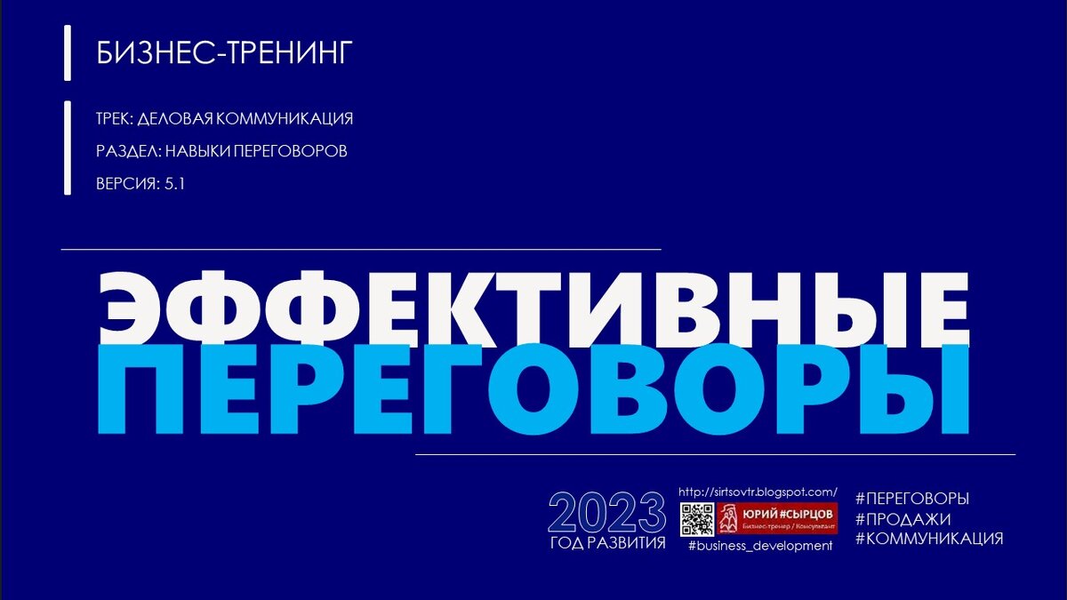 #переговоры #продажи #коммуникация ПОДГОТОВКА К ПЕРЕГОВОРАМ Русский авось в переговорах обычно приводит к проигрышу. У нас в культуре вообще не принято серьёзно относиться этапу подготовки, а многие переговорщики если и вспоминают о подготовке к коммуникации, так уже в лифте, поднимаясь в офис клиента ;-) Подготовка к переговорам - это учет множества факторов: 1. Психологическая подготовка Во-первых, нужен настрой на контакт и выстраивание конструктивных взаимоотношений. Далее подумайте, как сможете поддерживать свое ресурсное состояние. Не забудьте про настрой на выполнение поставленных целей. Также нужно знание своего типа личности и настрой на взаимодействие с типом личности партнёра. 2. Информационная Что сделать: поиск и сбор информации о специфике компании, приёмах коммуникации, переговорных стратегиях, типе личности и характере партнёра по переговорам. 3. Планирование Исходя из двух предыдущих пунктов, далее следует постановка целей. Все помнят про SMART-цели? Продумайте свои це