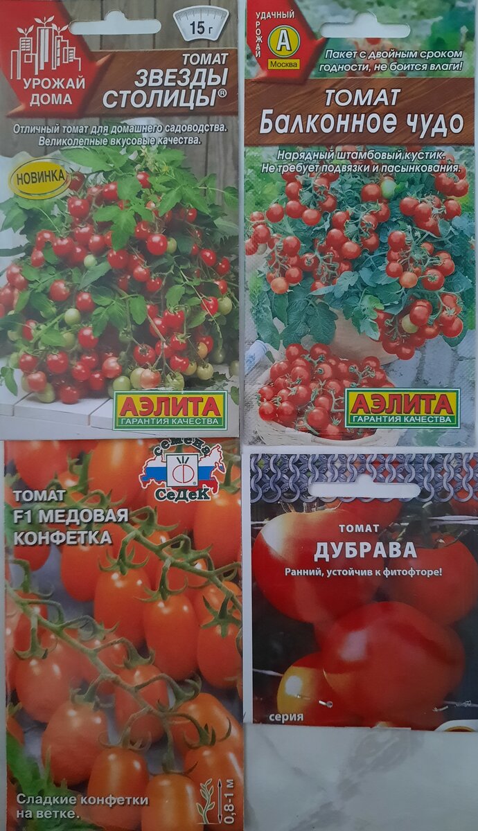 Фавориты прошлого сезона среди балконных помидоров. Помидоры среди моих балконно-огородных культур безусловные фавориты. Им отдана целая часть лоджии на восточной стороне. Места там не так чтобы и много. Узко, сантиметров 80. Поэтому стоят они в один ряд вдоль стены на невысоких подставках, сооруженных мужем. В прошлом году там разместилось 9 кустов. Сорта на фото. "Балконное чудо" в обороте у меня несколько лет. Их всегда много, хоть и не столько как на пакетном фото. Они не капризные. Крепкий ствол, темно-зеленая сочная листва. Следующие три сорта прошлым летом у меня были впервые. Лучший из них "Звезды столицы". Кусты повыше, но потоньше, чем первые. В банке (помидоры у меня растут в основном в обрезанных пятилитровых бутылях) они росли по два куста. Красивые, цветом чуть отличались от БЧ. Вкусом лучше. Кожица тоньше и более сладкие. Вот у БЧ единственный недостаток - они чуть с кислинкой. Стволики не очень крепкие, а плоды завязываются на концах побегов. Их приходилось подвязывать