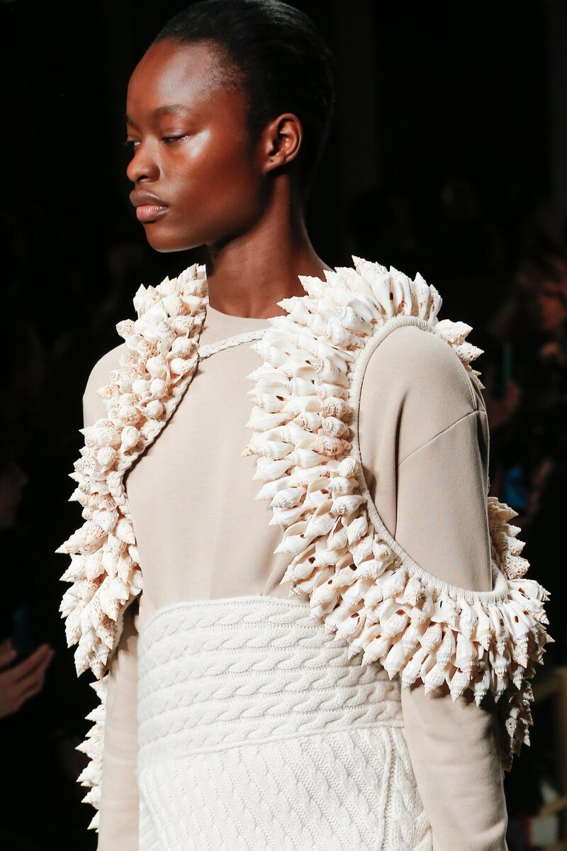 Не так давно показывала целых 16 интересных накидок (ссылочку дам в конце), но одну, самую необычную пропустила. Это показ от Burberry. SPRING 2017 READY-TO-WEAR. Я часто гуляю по Вог. Там много интересных идей. Чтобы не вязать, как бабушка. Болеро из ракушек привлекло мое внимание. Для кого-то ракушки вообще подножный материал. Конечно красивые и не поломанные поискать надо. Но это реально. Я даже нашла ракушки, похожие на используемые в модели. Называются Плеуроплока Трапезиум. Дырочки надо будет просверлить. А ввязывать можно тонким крючком или нашивать на полотно. Кому как удобнее. Я тоже использовала ракушки в своем вязании фриформ. Показать модельку? Источник. Другие статьи о вязании и моде. Подписывайтесь на канал, буду рада новым друзьям: https://zen.yandex.ru/id/5dd824260d13017d4ff746eb Связаться со мной можно на сайте: http://ingria-knit.ru/kontakty В контакте: https://vk.com/olga.ingria Телеграм канал https://t-do.ru/olgaingriacrochet рутуб https://rutube.ru/channel/2421130