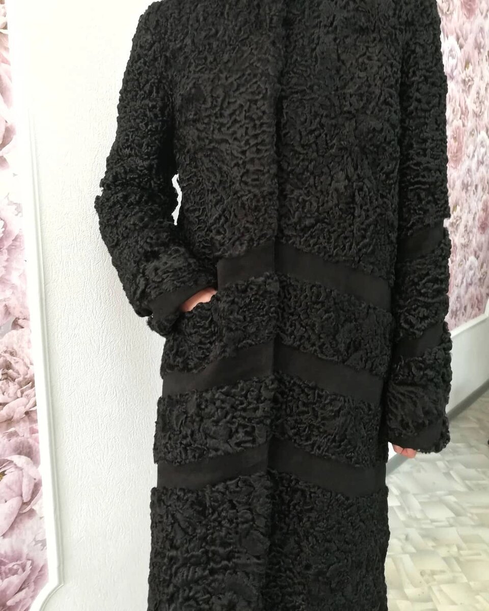 Шубка была старенькой,но не потерявшей красоты меха . Её уже перешивали дцать лет назад,когда хозяйка была студенткой. Переделали криво-косо,но и это носилось. Прошло время,шубейку решили реанимировать. Мех живой, можно попробовать. Из пожеланий заказчика- максимальная длина,тепло и длинный рукав, заказчица высокая и длина рукава обычно её не устраивает. Естественно,надо что то добавить, а раз нет меха,добавим замшу! Фото ДО нет,покажу,что получилось.Мне удалось собрать шубу комфортной ширины,прямого фасона,длиной до середины икры. Рукав втачной, длинный,как просили. Воротник стойка. На стане диагональные вставки из замши. На рукавах вставки образуют спираль. Подборта из замши. Роскошная подкладка на шерстепоне. Под замшевыми вставками тоже утеплитель. Не могу сказать,что я была в восторге от таких широких вставок, но только этот финт мне позволил сделать шубу больше,чем она была. Конечно,более тонкие полосы смотрелись бы изящней. А вот моя заказчица была в восторге! И носит шубу