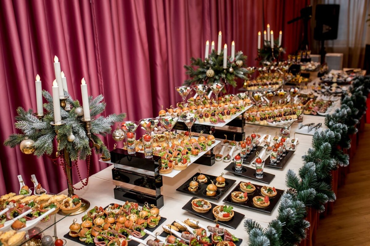 Фуршет – альтернатива традиционному застолью в Новый год, когда времени на встречу гостей - всего пара часов, а цель – максимально сэкономить пространство и создать приятную, расслабленную атмосферу для общения. Расскажем, как правильно накрыть фуршетный стол, чтобы все остались довольны. Слово «фуршет» в переводе означает «вилка», а само мероприятие предполагает минимальное использование приборов. Блюда подаются таким образом, чтобы любое из них можно было взять вилкой и без ножа. По правилам стол не должен быть ниже 90 см, а маленькие порции еды подаются в индивидуальной посуде. Тарелки для гостей выкладываются с края стола на поднос. Для новогоднего фуршета используйте маленькие тематические тарелки, такие, как Santa Claus от бренда Dibbern. Они оптимального размера и украшены праздничным зимним рисунком: миниатюрными Санта Клаусами с мешком подарков, елочкой, звездами, оленями и забавными снеговиками. Прямоугольная тарелка из этой же серии от Dibbern подойдет для “finger food” – фу