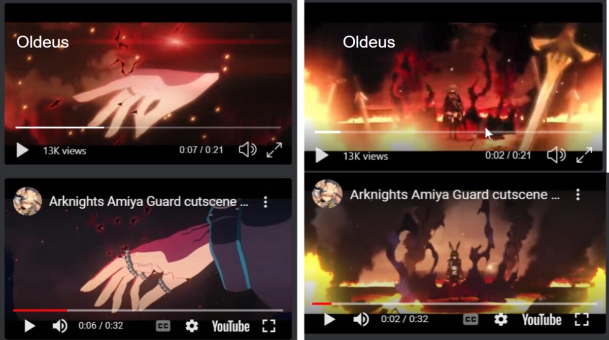 NFT-проект под названием Oldeus был обвинен в копировании анимации из анимированной сцены из мобильной гача-игры Arknights. Oldeus — это web3 NFT-бренд, в котором представлены персонажи и токены, вдохновленные мангой и аниме, которые пользователи могут приобрести за реальные деньги. Пользователи интернета быстро отметили поразительное сходство короткого трейлера сервиса с анимационной сценой Roaring Flare из игры Arknights, в которой Амия превращается в оператора класса Guard. Кроме того, согласно сообщению на reddit в подразделе Arknights, похоже, что несколько пользователей на дискорд-сервере Oldeus утверждают, что сходство между трейлером и сценой из Arknights объясняется тем, что они якобы сделаны одной и той же командой аниматоров. В Twitter-аккаунте Oldeus также появилась тема, касающаяся этого обвинения в плагиате, где они упомянули, что их целью был не плагиат, а вдохновение и воссоздание трейлера Arknights. В этой же теме они приложили несколько WIP-файлов, чтобы показать, что