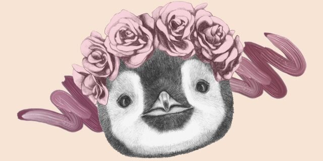 От основания треугольника проведите две дуги, зеркальные друг другу. Они должны быть выпуклыми к центру и упираться в контур круга. Закрасьте пространство между ними. Это лоб пингвина.
