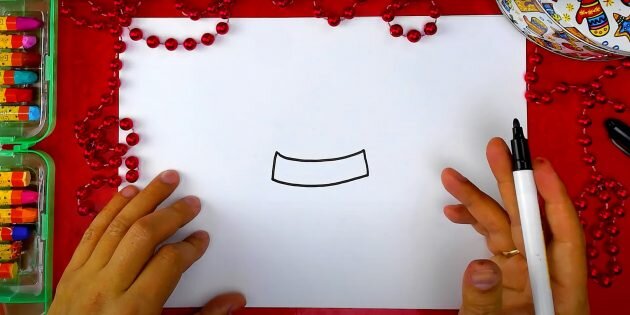 Что понадобится Как нарисовать Чёрным маркером наметьте горизонтальную линию в центре листа. Она должна быть слегка выпуклой вниз. Чуть ниже нарисуйте ещё одну. Соедините их вертикальными чёрточками. Это заготовка для шарфика. Над шарфом сделайте дугу, вытянутую вверх. По форме она будет напоминать узкую подкову или половину овала. Это голова пингвина. Внутри детали изобразите перевёрнутый треугольник: его остриё направлено вниз. Чуть выше кругами обозначьте глаза. Закрасьте их, оставив немного белого пространства для зрачков. Теперь изобразите лоб пингвина. Для этого в верхней части головы сделайте небольшую изогнутую галочку. Её изгибы будут над глазами, а остриё — чуть выше носа. Нарисуйте кончики шарфа. Для этого найдите нижний угол заготовки справа. От него начертите два небрежных треугольника, торчащие в разные стороны. К основаниям фигур добавьте вертикальные чёрточки. Это бахрома. Чтобы нарисовать живот птицы, наметьте квадрат с закруглёнными углами. Он располагается под шарфо