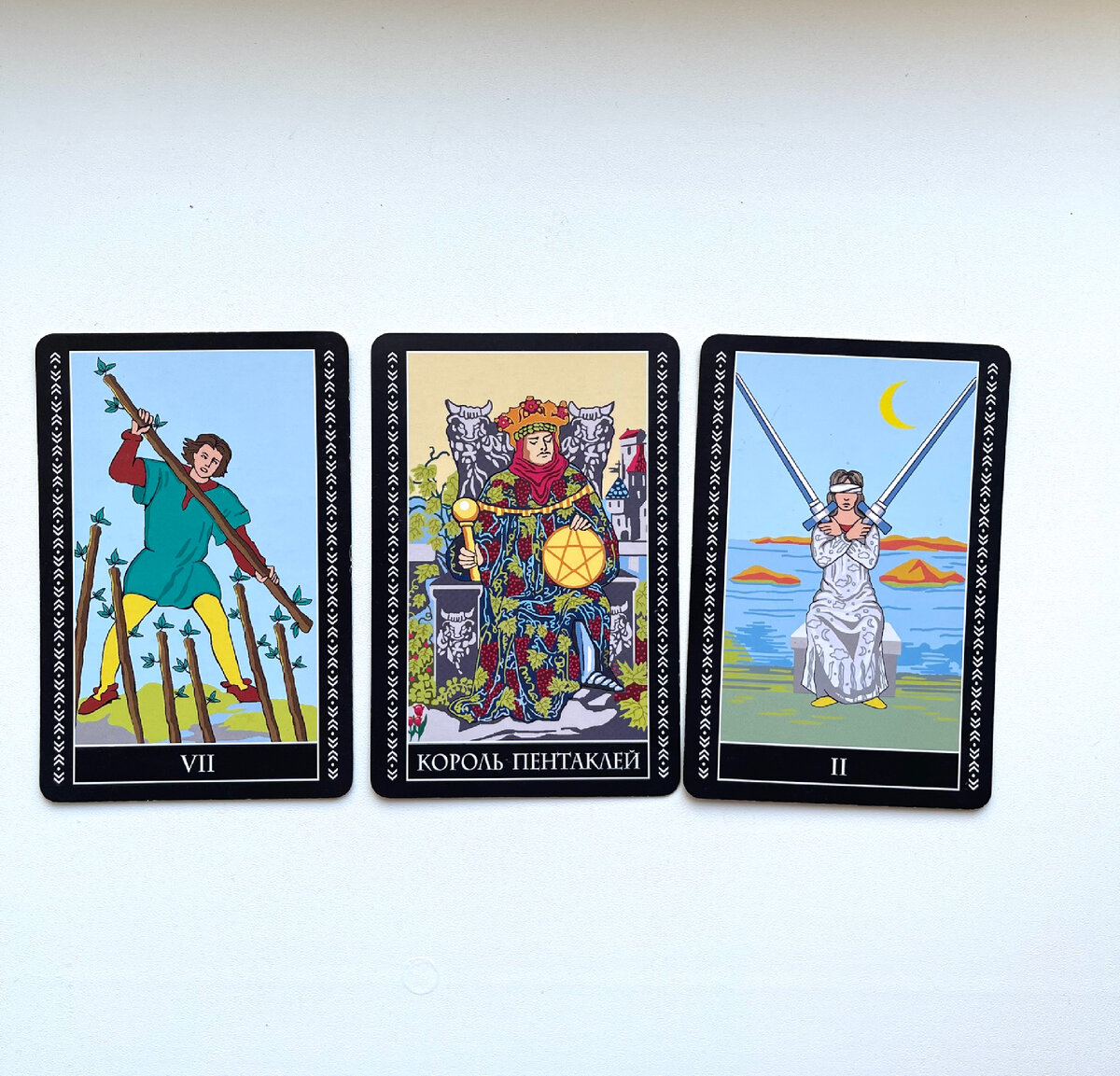 Здравствуй, дорогой читатель. Новогодние праздники подошли к концу, впереди новая рабочая неделя. Предлагаю посмотреть, какой она будет. 7 жезлов - Король пентаклей - 2 мечей. На этой неделе будьте готовы отстаивать свои интересы и желания. Возможны споры или небольшие конфликты. Но перед оппонентами у вас будет преимущество. Даже, если вы его не замечаете, есть все шансы выйти из этих споров победителем. Будьте готовы, что недоброжелатели попробуют оспорить какое-то дело, где вы уже смогли преуспеть. Не сомневайтесь в своих способностях. Будьте решительны и поступайте добросовестно. Успех не за горами. Самое время заглянуть внутрь себя и преодолеть свои внутренние конфликты. В рабочих моментах хороший прогноз для индивидуальных проектов. Сможете проявить не только свои индивидуальные профессиональные навыки, но и задать хорошую базу для дальнейшего развития. Главное, быть верным своим принципам. Хороший период для сделок с недвижимостью. Если планировали приобретение - действуйте.