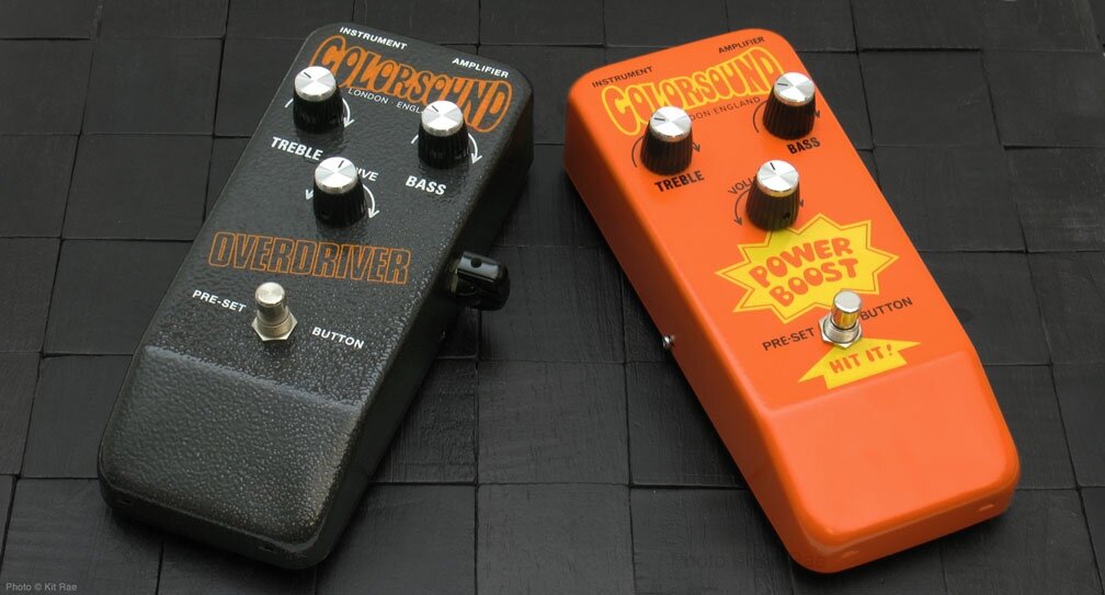В общем изначально была оранжевая педаль под названием power booster. Это была достаточно простая по содержанию схема, основанная на трёх транзисторах: первый с регулируемым усилением, затем второй с фиксированным коэффициентом усиления завершал стадию формирования разгона сигнала по амплитуде и потом был достаточно интересный и оригинальный для своего времени (это где-то 1970-е годы) двухполосный активный эквалайзер на третьем транз