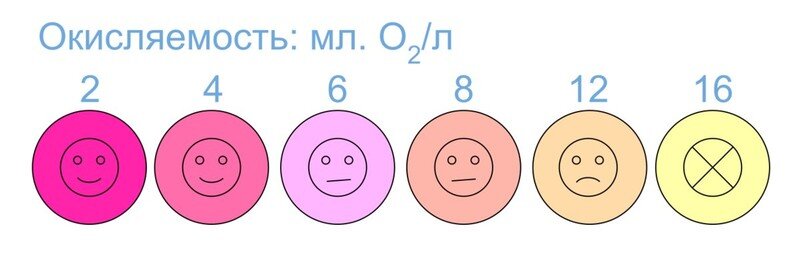 Окисляемость доброкачественной питьевой воды, которая отвечает высоким гигиеническим требованиям, составляет 2–3 мг кислорода. Для полива и прочих хознужд пригодна вода с показателем 3,0 мг/л. Резкое повышение этого параметра свидетельствует о том, что вода загрязнена стоками. То есть, окисляемость — это гигиенический показатель, он напрямую указывает на чистоту воды в источнике водозабора.