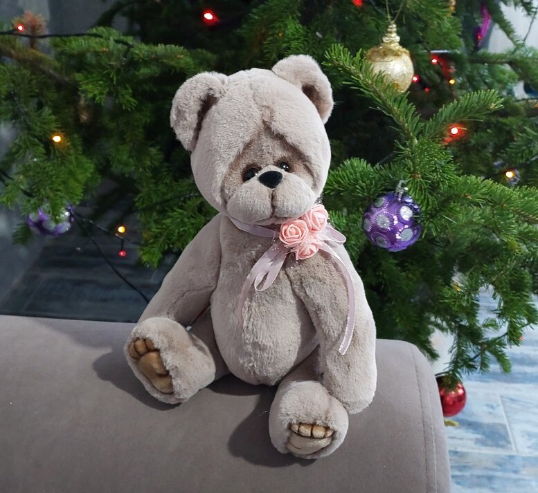Пришел наконец-то мой итальянский мех, обожаю с ним работать, он густой, плотный и очень нежный, а самое главное чудесные цвета, вот например у Франтишека - нежно пепельный кофе с молоком... Длина ворса всего 7 мм, но мех настолько мягкий и нежный, что Мишутку сложно выпустить из рук. Бархатный, любопытный носик очень притягивает поцеловать его, а японские глазки из стеклопластика так и светятся, у них чудесный влажный взгляд. Мишутка получился ростиком - стоя 30 см, а сидя 25 см. Крепления лапок и головы на 5-ти шплинтах, все поворачивается, наполнен Мишутка синтепухом, а металлические диски надежно удерживают лапки и придают приятную тяжесть тельцу. Пяточки и ладошки - мягкий велюр, все впадинки тонированы сухой пастелью. Украшают Франтишека - повязочка из атласной ленты и розочек из фоамирана... Мишутка Франтишек пока свободен... По вопросам приобретения Мишутки обращайтесь на эл.почту zhu8628@yandex.ru Все эти Мишутки и Зайки тоже ищут дом: Мишутка Платоша. Ретро плюш ручного окрас