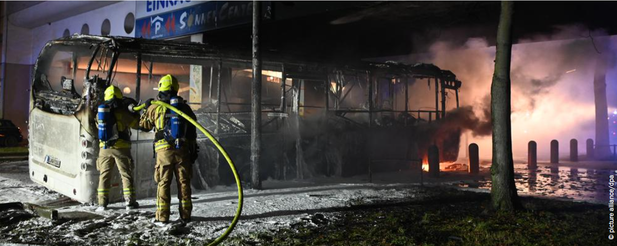 Два последних года продажа фейерверков в Германии была запрещена в связи с пандемией. Обоснований было два: чтобы избежать массового скопления людей и, как следствие, повышения заболеваемости, а еще, чтобы снизить нагрузку на больницы, т.к. в результате запуска фейерверков люди нередко получают травмы и нуждаются в медицинской помощи. И вот, наконец, на Новый, 2023-й год, фейерверки снова разрешили. Можете представить масштаб новогодних фейерверков в Берлине. Видео снято мной в обычном спальном районе (Темпельхоф) в 2015 году, такие фейерверки запускают жители района: К чему это привело? Как и ожидалось, во многих местах понадобилось прибытие пожарных, всего в Берлине было совершено около 1700 выездов пожарных (для сравнения, в доковидный 2020 было около 1000). Однако же на этот раз пожарные и полицейские были атакованы при помощи пиротехники. Во многих городах Германии в новогоднюю ночь полиция и пожарные, выполнявшие свою работу, были атакованы петардами и ракетами. Особенно отличилс