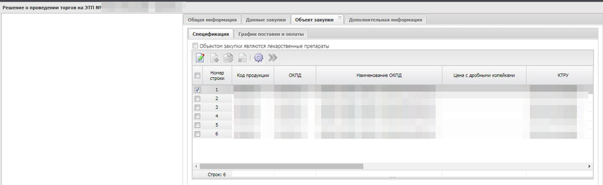 Для того, чтобы отредактировать спецификацию в "Решении о размещении заказа", необходимо исключить "Заявку на закупку", так как в решении спецификация не редактируется. Чтобы исключить "Заявку на закупку" из Решения, необходимо в эд "Решении о размещении заказа" на вкладке "Общая информация", найти блок "Заявки и заказчики", выделить ЗНЗ и нажать на кнопку "Удалить" В "Решении о размещении заказа" нажать на кнопку "Применить", тогда "Заявка на закупку" перейдет на статус "Принят организатором" Открываем ЗНЗ и нажимаем на кнопку вернуть, тогда ЗНЗ перейдет на статус "Есть лимиты" или "Принят без лимитов". Нажимаем на кнопку "Отказать" и далее действие "Отменить отказ". Редактируем спецификацию в "Заявке на закупку" на статусе "Отложен". После того, как внесли нужные изменения, обрабатываем ЗНЗ до статуса "Принят организатором" и включаем в "Решении о размещении заказа". Для этого в ЭД "Решении о размещении заказа" на вкладке "Общая информация" в блоке "Заявки и заказчики" нажимаем н