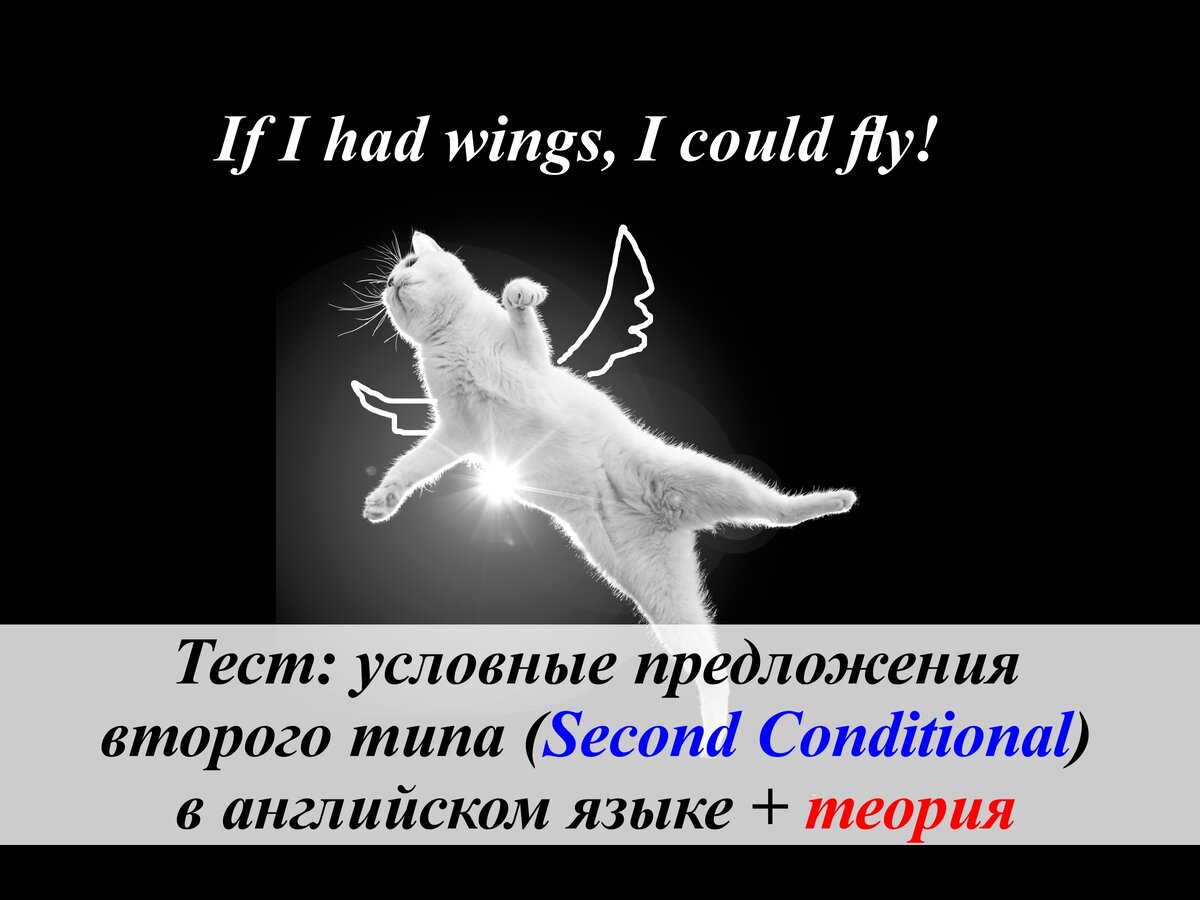 Здравствуйте, уважаемые читатели! На связи снова English Cats! Мы продолжаем череду статей про условные предложения на английском языке, и сегодня у нас на повестке дня Second Conditional Sentences (условные предложения второго типа). Если вы еще не читали наши статьи про условные предложения нулевого и первого типа, то обязательно сделайте это перед прочтением данной статьи. Использование условных предложений второго типа Условные предложения второго типа используются для того, чтобы говорить о вещах, которые нереальны, то есть не соответствуют действительности или невозможны (совсем маловероятны) в настоящем или будущем. Например: Если хотите сказать человеку, что вы бы сделали на его место, то со всей уверенностью используйте второй тип условных предложений: Условное предложение второго типа используется при описании причин по которым вы не можете что-то сделать: Кроме того, если вы хотите задать гипотетический вопрос, то в нем также необходимо использовать именно этот тип условн