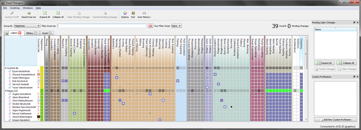 Один из лучших модов для Dwarf Fortress, облегчающих жизнь, получил пререлизную версию для Steam. Ветеранам игры хорошо знаком мод Dwarf Therapist, являющийся важным столпом, значительно упрощающим менеджмент своих дварфов. В своем базовом виде Dwarf Therapist представляет дополнительное окно, позволяющее искать, сортировать и управлять большими объемами информации. В частности, при помощи мода гораздо проще находить незанятых дварфов и распределять им обязанности. Кроме того он позволяет понимать и управлять статусами дварфов гораздо быстрее, чем в базовой игре. Сортировку можно использовать с атрибутами, по характерам, счастью, как долго они жили и так далее. Хотя часть функционала Dwarf Therapist уже не требуется, так как Steam-версия Dwarf Fortress включает новый удобный интерфейс, он все еще не позволяет с той же легкостью собирать и распределять данные так, как это делает мод. В тестовой версии пока нет всего функционала, но релиз можно ждать в ближайшие недели. Пока же можно ска