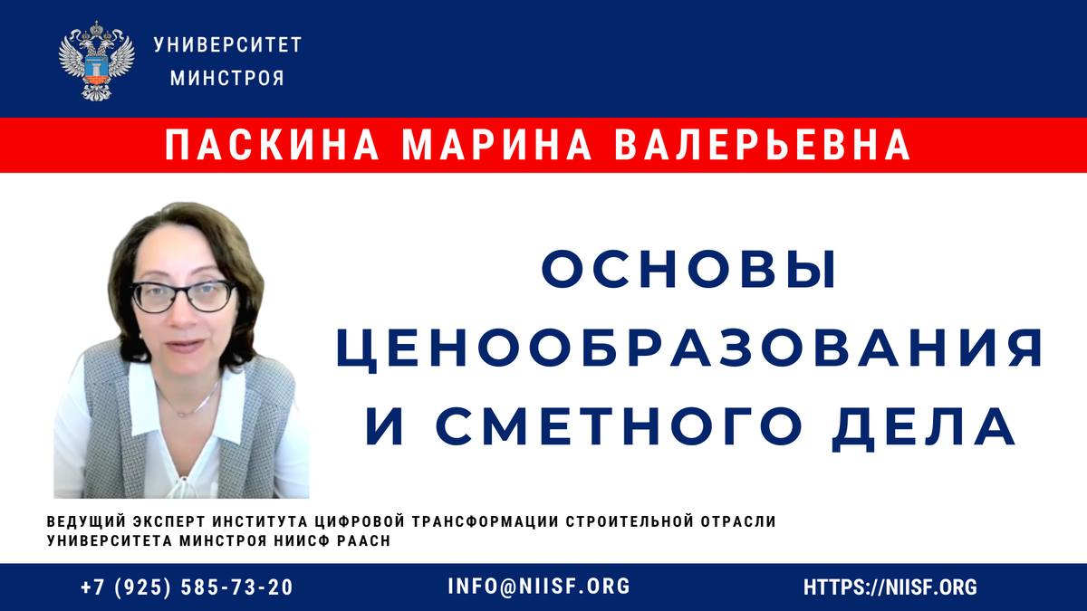 Вебинар: Основы ценообразования и сметного дела Спикер: Паскина Марина Валерьевна-Ведущий эксперт Института цифровой трансформации строительной отрасли Университета Минстроя НИИСФРААСН Видео