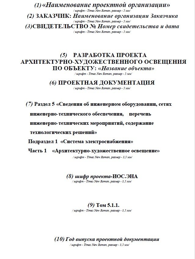 Состав проектной документации раздела "Архитектурное освещение" (по рекомендациям оскомархитектуры)