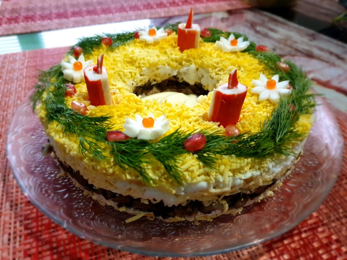 Всем здравствуйте! Первую публикацию в этом году хочу начать с рецепта чудесного салата, который готовила к Рождеству. Им можно украсить стол к любому празднику, поэтому спешу поделиться с вами этим рецептом.