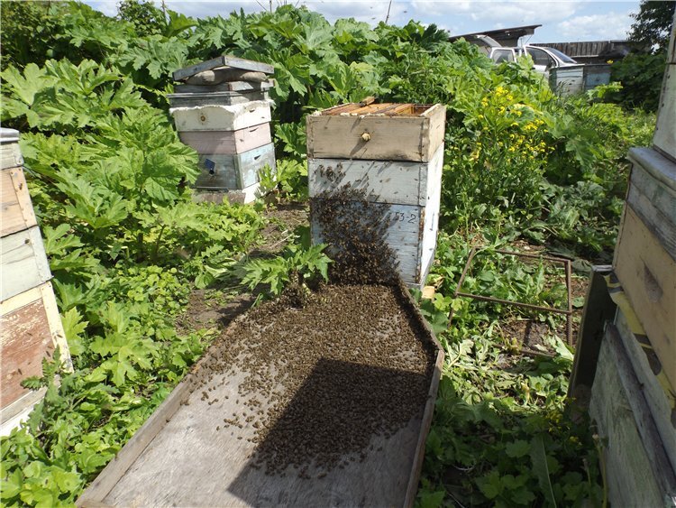объединение роя с чужой семьей пчел или отводком