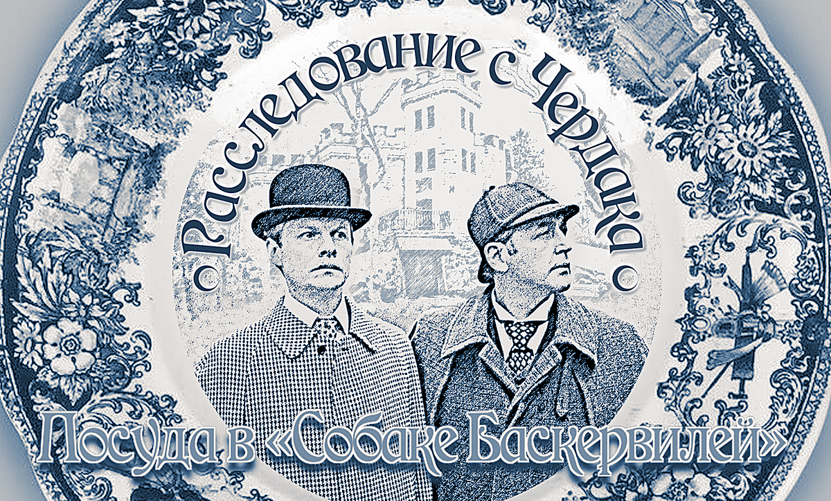 Причем, тут прямо на столе целый столово-тарелочный сервиз. И превосходно дополнены серебряными, ну или мельхиоровыми, если хотите, но, непременно, с серебрением предметами. Причем, когда в 1 части в Баскервиль холл в гости пожаловали Стэплтоны, на столе совершенно другой сервиз - густого синего цвета, потрясающего вида. "Для званных ужинов". Любопытство, конечно, оно отнимает много времени у ищущего, особенно, у того, у кого и так есть чем заняться. Но, что за посуду могли найти в восьмидесятые для фильма? Чертовски интересно же!!! Понятное дело, могли использовать любые тарелки, мы на них и внимания бы особо не обратили, но так хочется узнать, а какие? Видно, что все детали в "Приключениях" подобраны к месту и со вкусом, я бы сказала, с любовью к делу, все, как говорится, чинно и по-английски благородно. Вызов принят, я начала поиски. Не может быть? Через несколько дней нашла синюю тарелку.